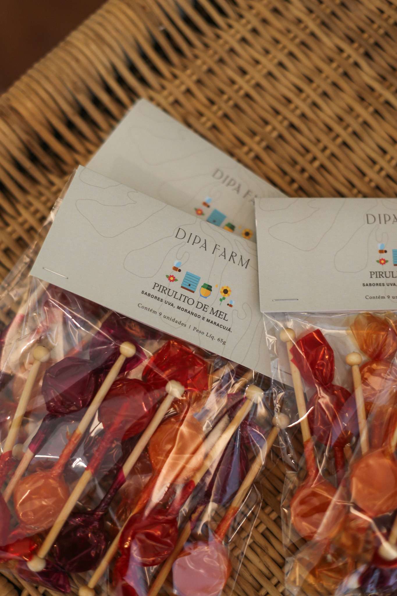 Desenvolvido com mel de flores silvestres Dipa Farm, vitamina C e saborizantes naturais de frutas, os pirulitos de mel são ideias para as crianças e perfeitos para as lancheiras, momentos de diversão do dia a dia e aventuras ensolaradas. E ainda auxiliam na proteção de imunidade.